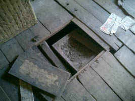 畳を上げてみるとまた新たな発見が。 床が下がっていた方の束は敷石が見えないほどに沈下しているようだ・・・ 束が敷石に乗っていないものやら・・・ なんか囲炉裏のようなあとも・・・ その他にも、畳の下や床下からは、昔の100円玉やそろばんやおはじきやらが・・・ 残念ながら、床下防空壕や二条城からの抜け穴は見つからなかったが、畳上げは楽しかった♪ 壁に貼ってあった新聞やらもはがしました。明治の新聞だった! 二階も綺麗?な土壁が現れました! よしやまちに帰って、歪み調査図面のまとめを頑張りました。 バイトへの時間やS先生からのプレッシャーと戦いながら頑張りました。 町子さんもS先生からのプレッシャーの中、別の町家の同じ作業をやってました。 まあ、お互い間に合って良かったっすね~♪ 今日は夜間1年からNさんが来て下さいましたー。 これで一段落!みなさま、お疲れさまです! 町子&J&&TSU&IW&N 2007/07/28(Sat) 15:53:38