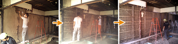 この日から、沈み歪んだ柱を直すべくK棟梁のところの若い衆3人組が立ち上がりました。